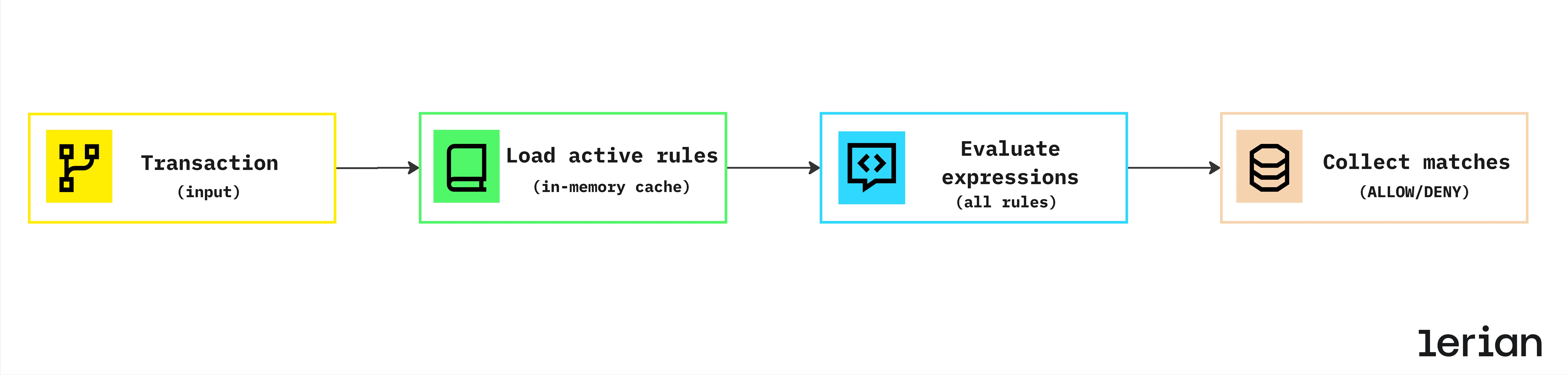 - Complete evaluation: All active rules evaluated for comprehensive audit trail