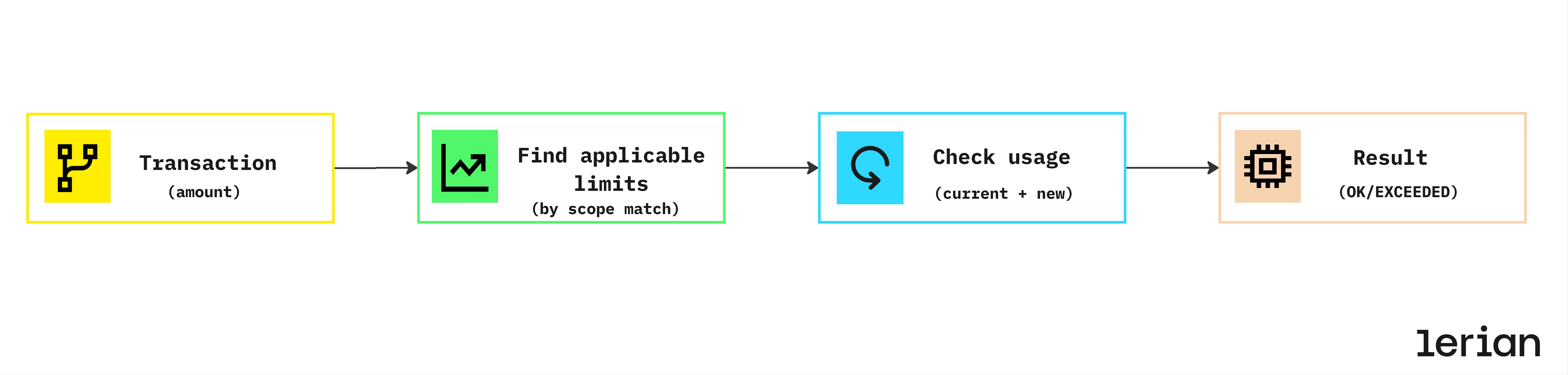- Concurrent safety: High-throughput environments with many simultaneous transactions per account are fully supported. Limits behave correctly under load.