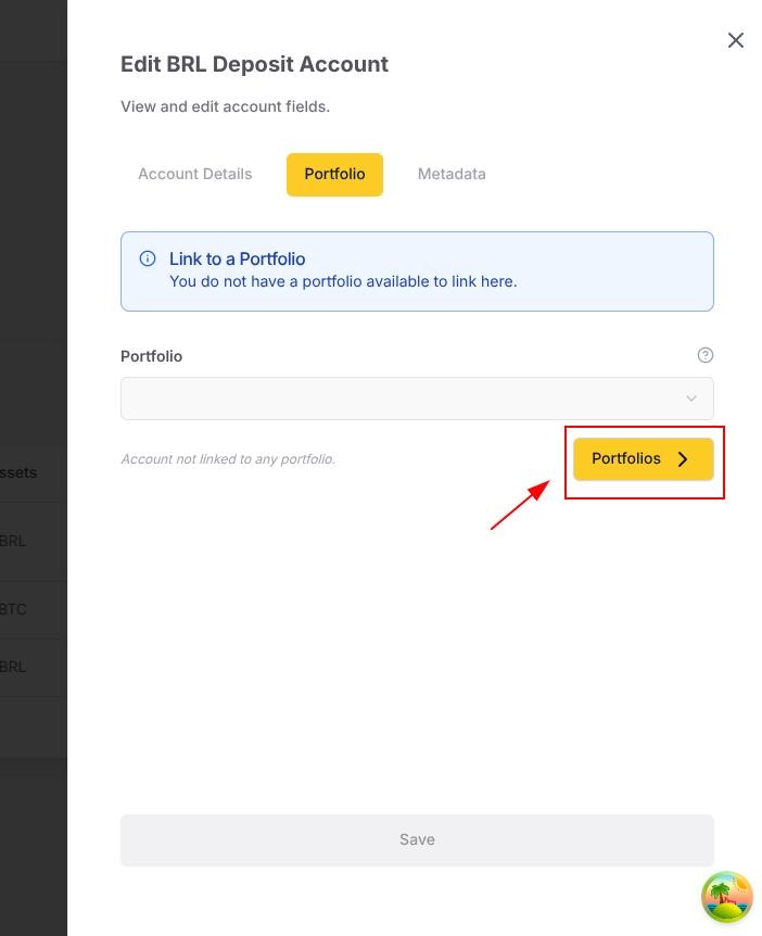 If you haven’t added the Account to a Portfolio before, you can do so directly from the Accounts page. To do so, follow these steps:From there, select the Portfolio tab, and select the Portfolio you want.