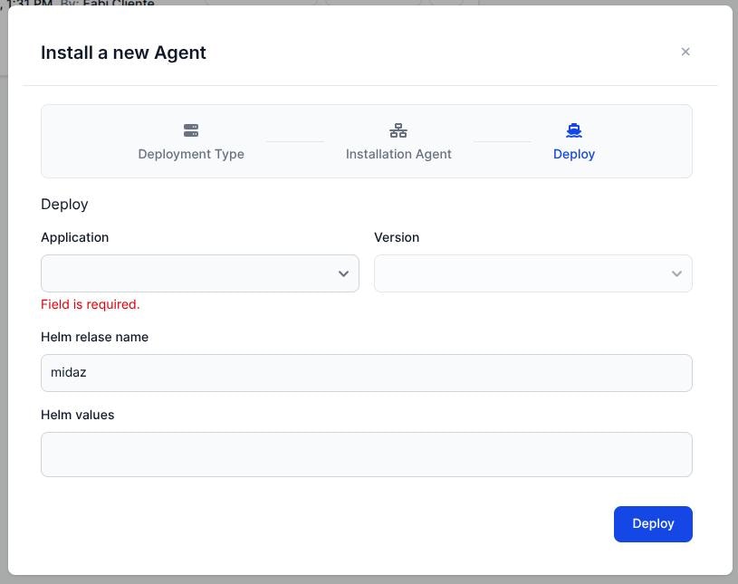 If you don’t have any deployments yet, the Install a new Agent window appears automatically.