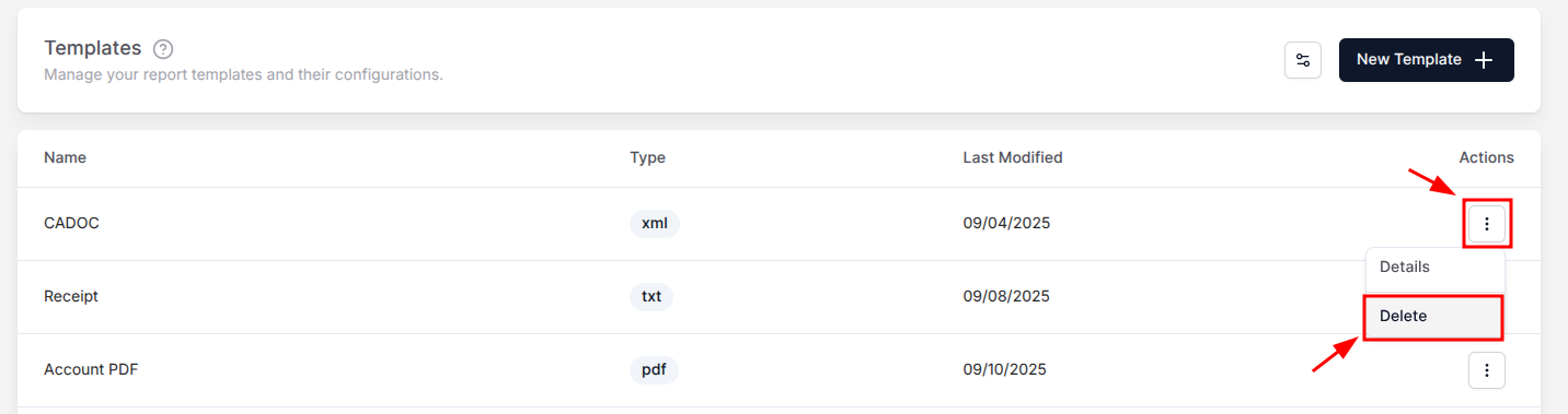 Click the three dots () on the Actions column and select Delete Template (Figure 1).
