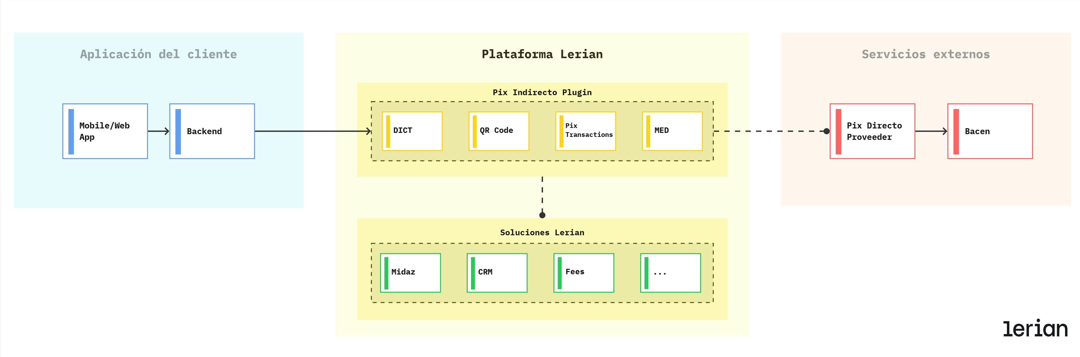 El Plugin de Pix Indirecto proporciona una capa de procesamiento unificada entre los sistemas centrales del cliente y su Participante Directo. Maneja: