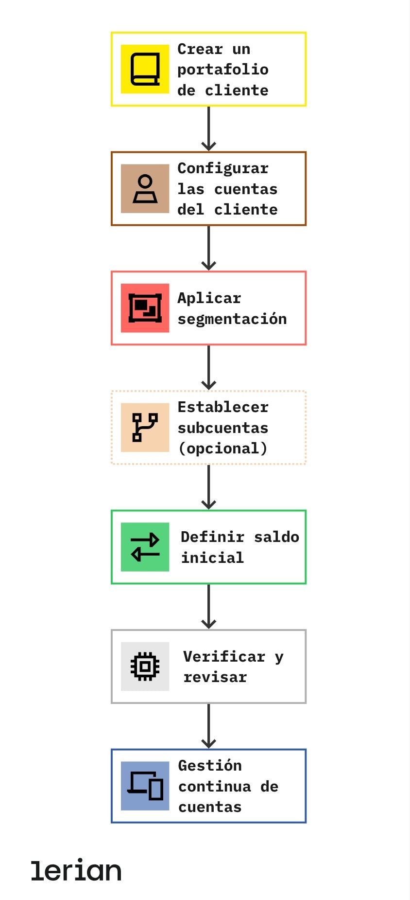 Comience creando un Portafolio para cada nuevo cliente. Los Portafolios actúan como los contenedores lógicos para las cuentas. Vincule cada portafolio a su CRM o sistema interno a través de metadatos (por ejemplo, ID de Entidad).Paso 2: Configurar Cuentas de cliente