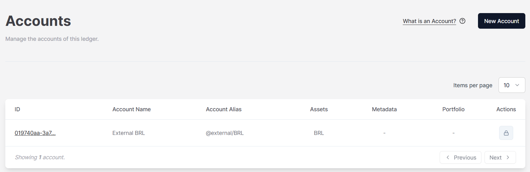 NotaEl icono de candado en el lado derecho de la pantalla indica que la cuenta no puede ser editada o eliminada. Esto aplica solo a cuentas externas.