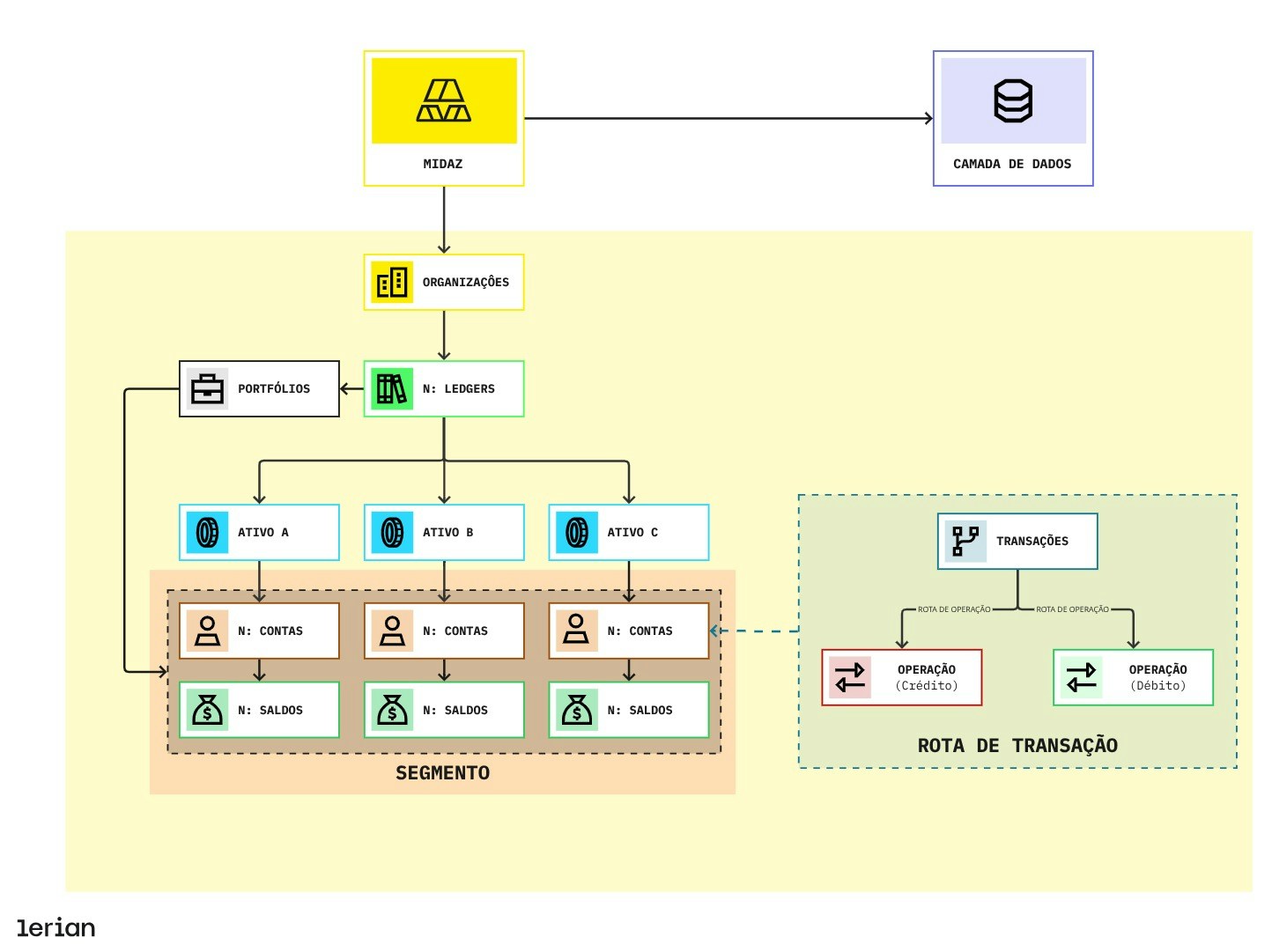 Cada organização representa um ambiente distinto usando o Midaz. Ela pode conter um ou vários ledgers, dependendo de como você estrutura seus dados.Ledgers