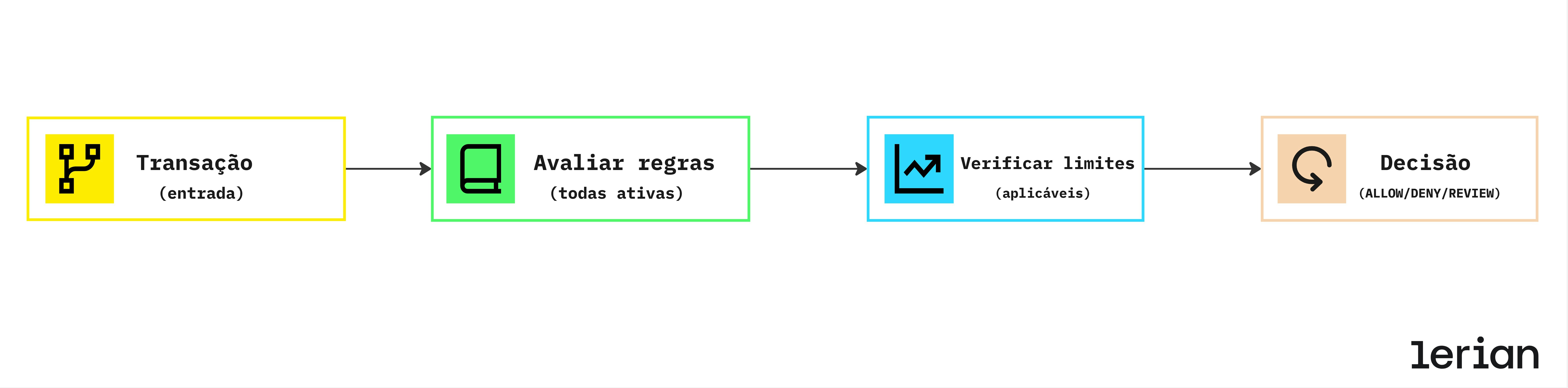 - Decisão retorna ALLOW, DENY ou REVIEW com base nos resultados da avaliação